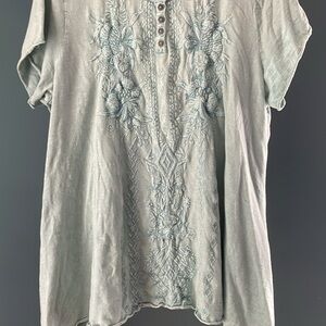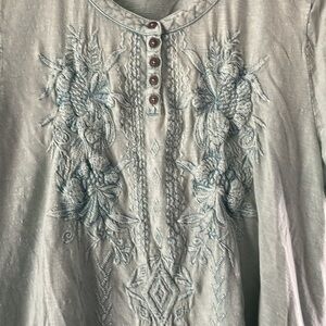 Coldwater Creek Soft green Gray Embroidered Blouse