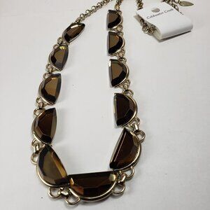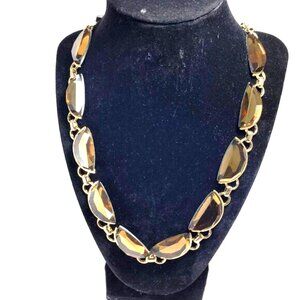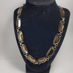 Coldwater Creek Statement Necklace – Bold Gold Half-Moon Beads, Smoky Gemstones