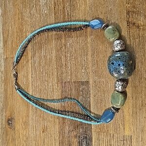 Coldwater Creek Stone & Bead Necklace 17" 2" ext.