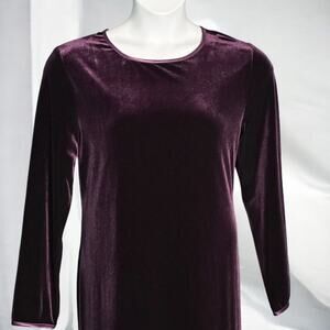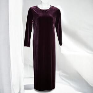 Coldwater Creek Stretch Velvet Long Dress Size L Deep Purple Long Sleeve Holiday