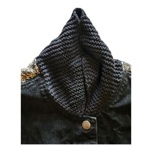 This Coldwater Creek PXL (Plus XL) mixed-media jacket features a unique combo of a genuine 100% suede front with cozy knit Fair Isle / Nordic pattern sleeves, collar, and back (55% ramie / 45% cotton), giving it a warm, rustic, and winter-ready look. The button-front design, stand collar, and traditional cold-weather pattern make it perfect for cottagecore, cabincore, mountain lodge style, and cozy casual layering. Great for cooler days, holiday outings, weekendwear, and relaxed everyday styling.