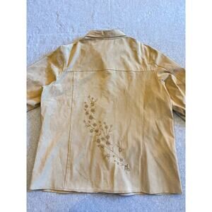 🧥 Coldwater Creek Suede Leather Jacket – Women's XL, Cream, Embroidered Snap Button