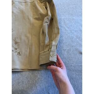 Coldwater Creek Suede Leather Jacket Women's XL Cream Embroidered Snap Button