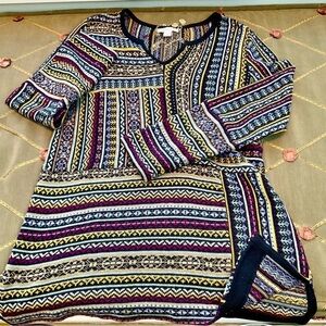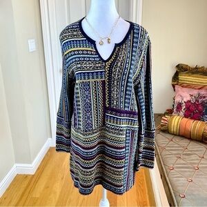 Coldwater Creek Sweater Cotton Tunic Split Neck Colorful Stripes (M)