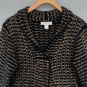 Coldwater Creek Sweater Womens Medium Brown Wool Blend Shawl One Snap CardiganChunky, textured knitButton Front
