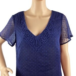 Coldwater Creek Swiss Dot Blouse Size XS Blue