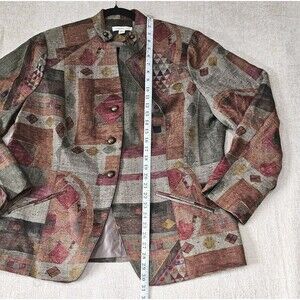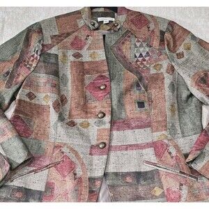 Coldwater Creek Sz 20 Blazer Fitted Southwestern Tapestry Jacket Tweed Texture
