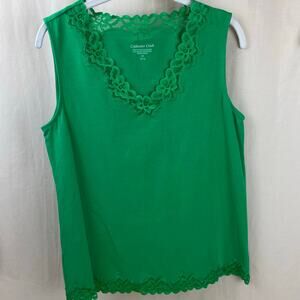 Coldwater Creek Sz Medium Lace Trim Sleeveless Bundle - 2 Tank Tops Green Yellow