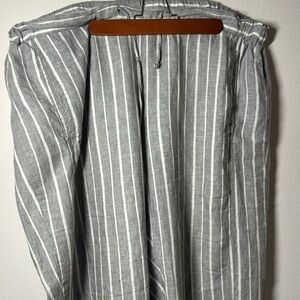 Coldwater Creek Sz XL gray white stripe back elastic front ties 100% linen pants