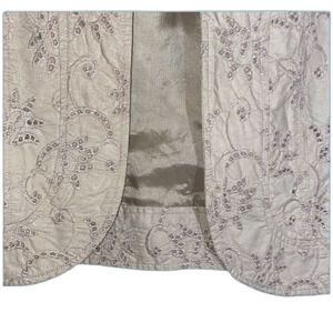This Coldwater Creek jacket features intricate eyelet embroidery and split cuffs, combining vintage style with modern elegance.