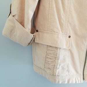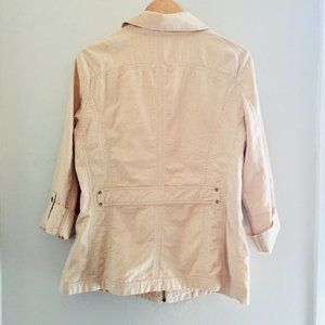 Coldwater Creek Tan/Cream Stripe Zip Up Cargo Lightweight Cotton Jacket Size 12