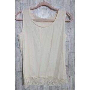Coldwater Creek Tank Top Lace‎ Hem Ivory Sleeveless Basic Classic Layering Small