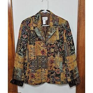 Coldwater Creek Tapestry Patchwork Jacket Blazer Women’s Size Medium, Button Front, Floral Velvet Cuff, Fully lined, Front Pockets, Thick Material, Rayon/Polyester. Excellent Condition!
