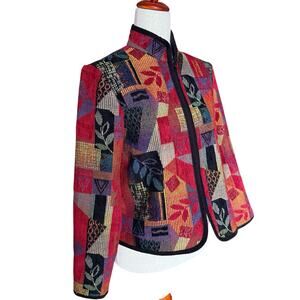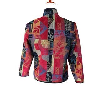 Coldwater Creek Tapestry Zip Jacket Geometric Patchwork Multicolor PXS