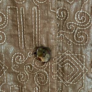 Coldwater Creek Taupe Shimmer Embroidered Cotton Blazer LARGE Work Career Travel. 100% cotton. Shoulder padding.Two functional chest pockets. Square mother-of-pearl buttons Tone-on-tone embroidery all over in a geometric pattern. Great spring and summer piece.
