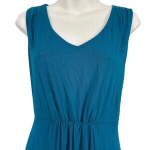Coldwater Creek Teal Blue Jersey Knit Sleeveless Maxi Dress V-Neck Stretch sz M