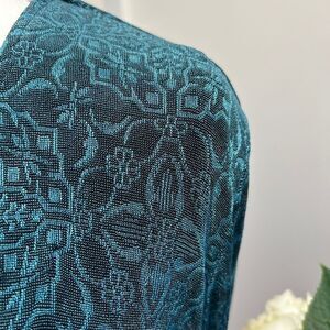Chic teal fabric with intricate texture. Ideal for stylish outfits.