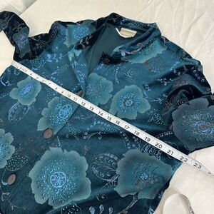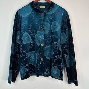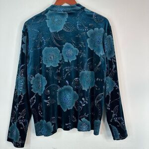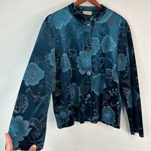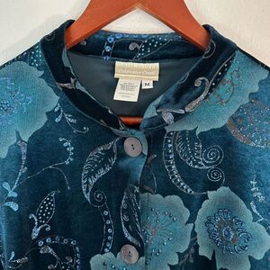Item: Coldwater Creek Teal Velvet Glittery Floral Button Front Cardigan Womens Medium