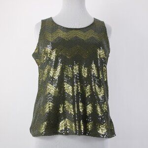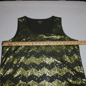 Coldwater Creek Top $75 Sz 1x Green Olive Sequin Chevron Poly Cotton Top