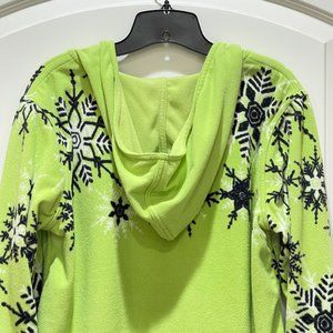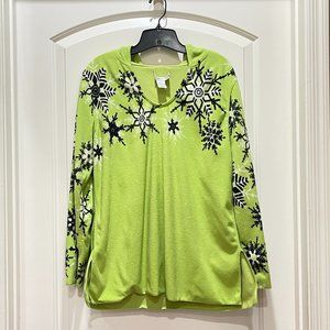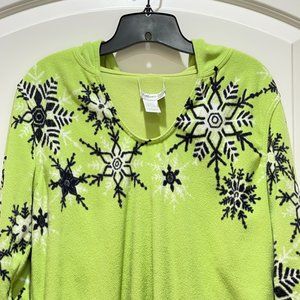 Coldwater Creek Top Medium Green Black Snowflake Fleece Long Sleeve Pullover