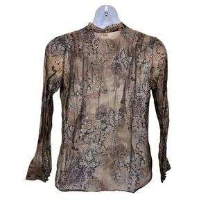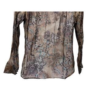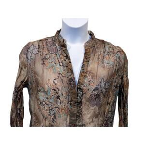 Coldwater Creek Top Wmns Sz Large 14|16 Brown Paisley Leaves Blouse Tuck Detail