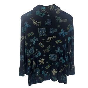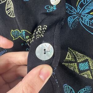 Coldwater Creek Top Women Size M Black Shell Button Down Made in USA Giraffe