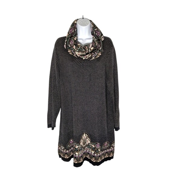 Coldwater Creek Tunic Sweater Dress Plus 2X Cowl Neck Long Sleeve Black Floral