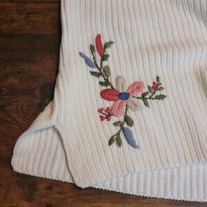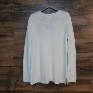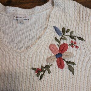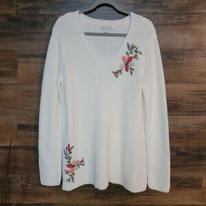 Coldwater Creek Tunic Sweater Womens L Floral Embroidered White Soft Stretch