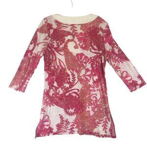 Coldwater Creek Tunic Top Womens M 10-12 Pink Floral Print Linen/Poly 3/4 Sleeve