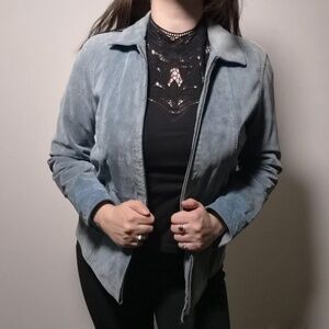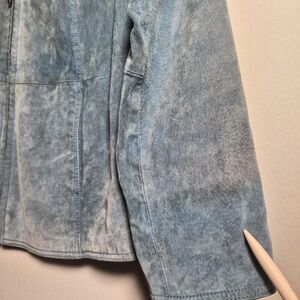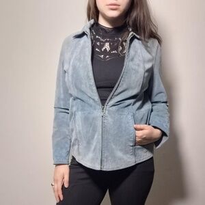Coldwater Creek VTG Y2K Denim Blue 100% Seude Calf Leather Costal Cowgirl Jacket