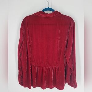 Coldwater Creek Velour Velvet Button Blouse Womens Plus Size 2X Red Floral Soft