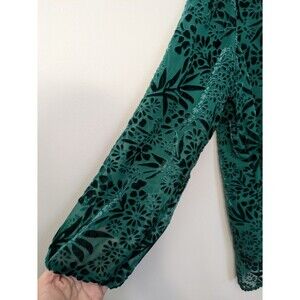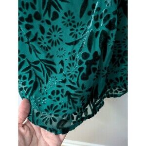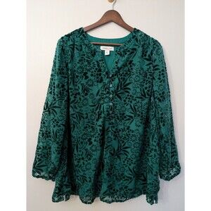 Coldwater Creek Velvet Burnout Tunic Top Floral Henley Green Holiday Flowy 1X