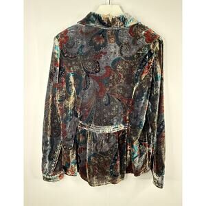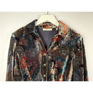 Coldwater Creek Velvet Button Up Top Womens Size 6 8 Paisley Boho Whimsigoth