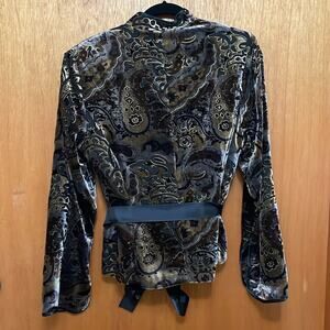 Paisley Print Velvet Lined Jacket with Detachable Belt. Length 25”. Chest 16". Item 18