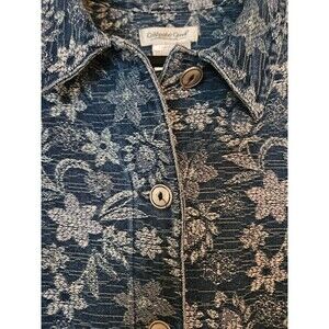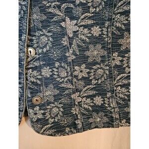 Coldwater Creek Vest STRETCH DENIM Size L Jacquard FLORAL EMBROIDERY Embroidered