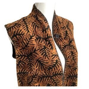 Coldwater Creek Vintage Brown & Black Fern Printed Fleece Vest Small