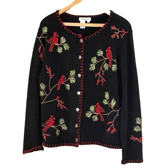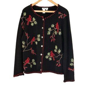 Coldwater Creek Vintage Cardigan Sweater Embroidered Cardinal Christmas Size Lg