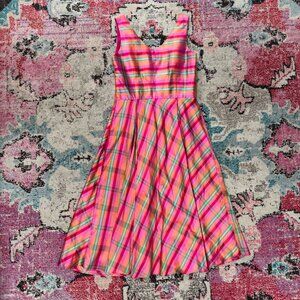 Coldwater Creek Vintage Pink Plaid Silk 60’s Style Sleeveless Dress Size 8