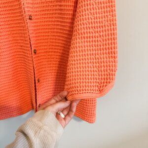 Coldwater Creek Vintage Waffle Weave Knit Sweater Cotton Pink Orange Size Large