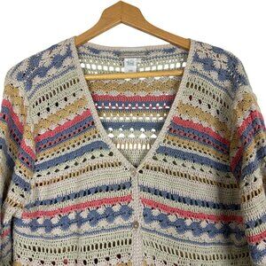 Coldwater Creek Vtg Crochet Cardigan Women's Medium Boho Striped Ramie Cotton