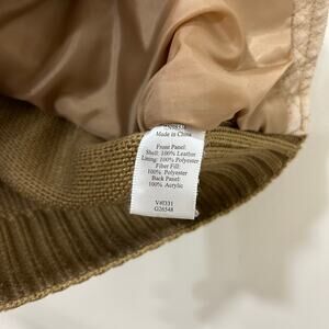 Coldwater Creek Vtg Womens Sz Medium Tan Suede Leather Front Knit Vest Gorpcore Western. The shell is 100% leather, the lining and fiber fill are 100% polyester and the back panel is 100% acrylic. It measures 20 inches from armpit to armpit and the length from shoulder to hem is 23.5 inches.  In excellent condition.