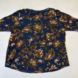Coldwater Creek Waffle Knit Vintage Vibe Henley Top Blue Jewel Tone Florals 2X