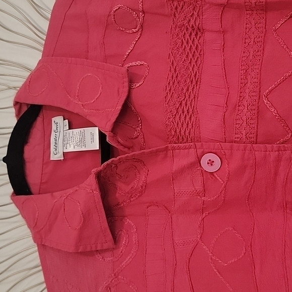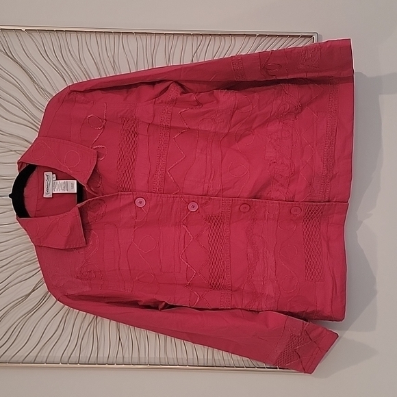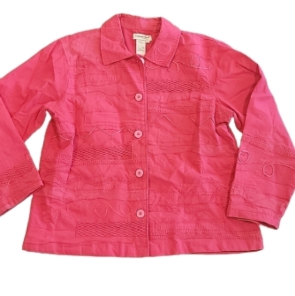Coldwater Creek Watermelon Pink Embroidered Button Down Blazer Jacket Size Large