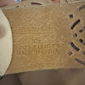 Coldwater Creek White Leather BELT Large Gold Tone Buckle X1 / XL Scroll 48”