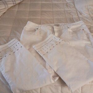 Coldwater Creek White Summer Pants with Fancy Cut-Out Trim Size 18. These pants are so cute and in excellent used condition!