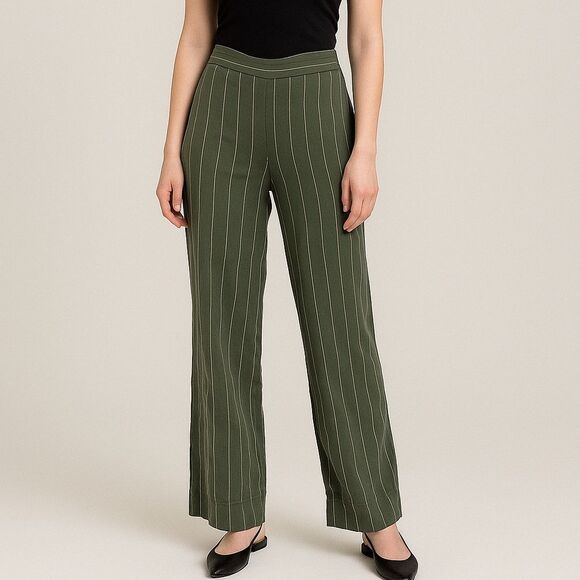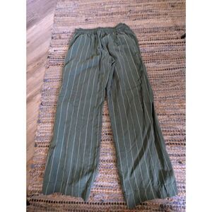 Coldwater Creek Wide Leg 12 Linen Blend Pants Pistachio Green Pinstriped