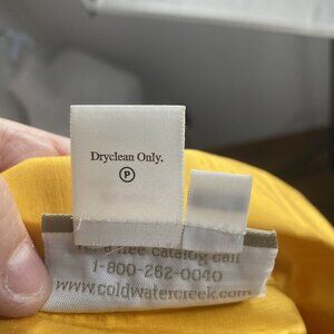 Coldwater Creek Womans Wrap Top Size M Petite Yellow Silk Sleeveless Tie Detail