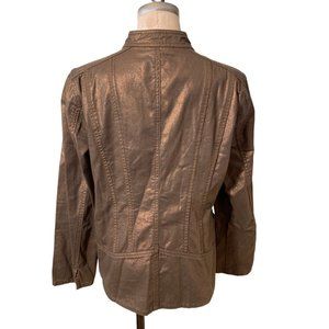 Coldwater Creek Women Jacket Brown Metallic Snap Closure Jacket Size 10