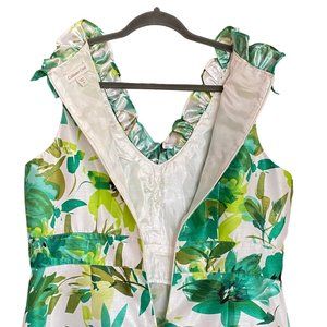 Coldwater Creek Womens 16 Ruffle Neck Floral Summer Shift Dress Green Tropical.