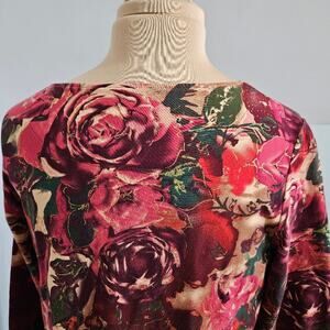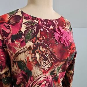 Coldwater Creek Womens Beaded Embellished Rosette Floral Top Red Pink Medium